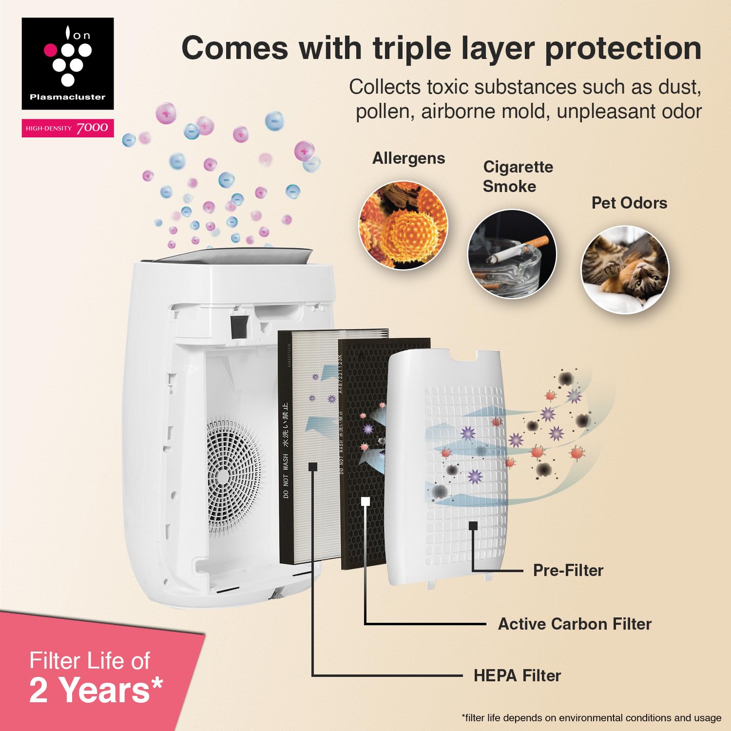 🌬️ Plasmacluster Ion Technology (7000 Series) for superior air purification